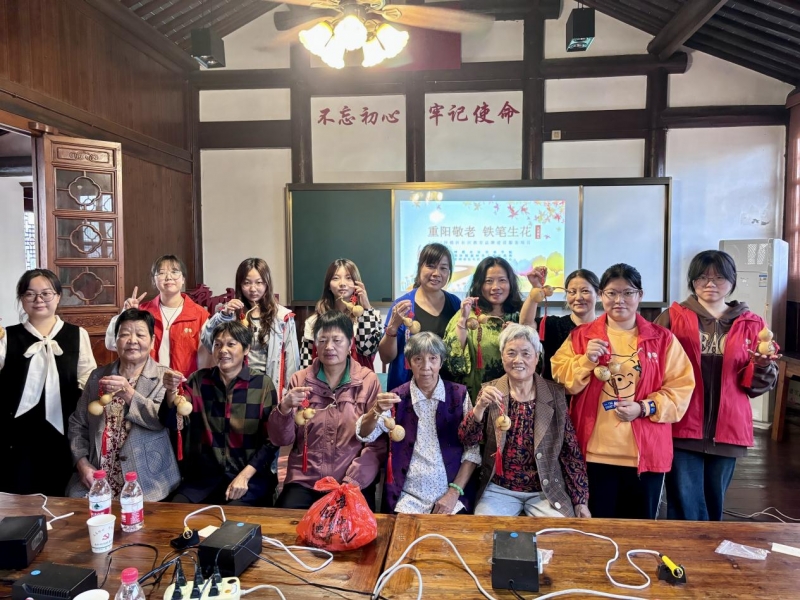 重阳节是中华民族的传统节日,承载着尊老、敬老、爱老的文化内涵。为进一步了解重阳节的风俗和文化,弘扬中华民族尊老敬老的传统美德,营造关爱老人的浓厚氛围,10月11日,必赢线路检测中心联合思政部在殷村小镇客厅党建中心开展了“爱满重阳 情暖夕阳”重阳节敬老志愿活动。本次活动思政部(马克思主义学院)主任陈盛、专任教师徐猛香、金芸、必赢线路检测中心专任教师沈冰洁、辅导员王彤以及数十名“蒲公英”志愿者参与其中。